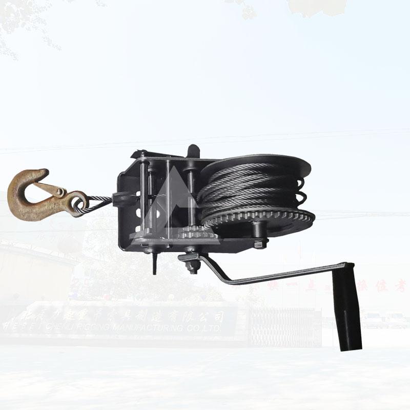 一般下水道、礦井這樣的環(huán)境空間比較小,人們不能使用大型的機械進行工作,這個時候可以選擇牽引工具手動絞盤和救援三腳架配合來完成工作。可以先把礦用手搖絞車安裝到救援三角架上,然后工人穿上防墜器,佩戴好后,通過上面工人不斷的搖動手動絞車的手柄,來慢慢的下降,使得進入井下工作的工人,能夠平安的降落到井下。起重搬運機械廠家撼馬為滿足不同客戶的需求,生產(chǎn)了各種型號的手搖絞盤,方便客戶使用。
